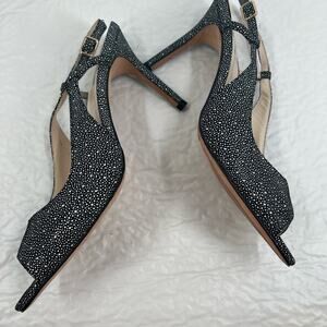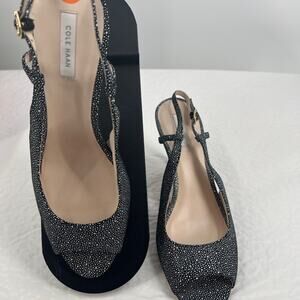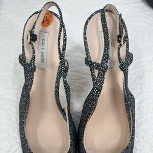 Cole Haan Black White Spotted Bethany Slingback Open Toe Pump Heels
