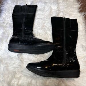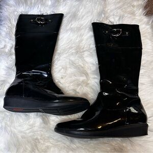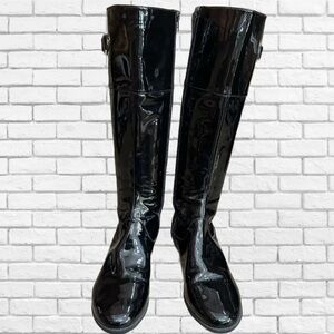 Cole Haan patent leather black tall rain boots size 8.