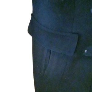 The black wool peacoat has a detachable hood. It zips up the front. This single button up front will complete the classic look.