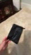 Elegant black woven leather clutch with wrist strap. Perfect for any occasion.