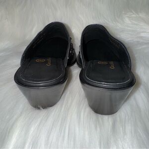 Step into elegance with Cole Haan's black and red mules, designed for both style and comfort. These shoes feature a sophisticated silhouette, perfect for elevating any outfit. Crafted with attention to detail, they are ideal for semi-formal occasions.
