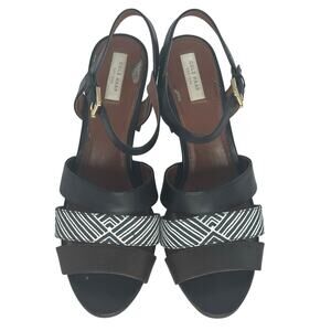 Cole Haan Block Heel Sandals Black White Stripes Size 9B Summer Vacation Resort