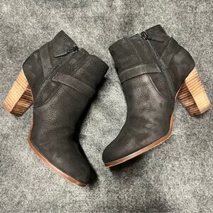 These stylish booties are in excellent condition and have been gently used. There are some minor signs of wear, as shown in the pictures.