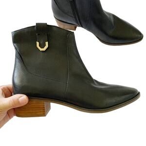 Cole Haan's Maci booties add shining ring hardware to subtle western styling for a go-to accent dressed up or down.