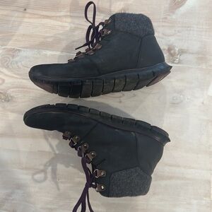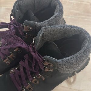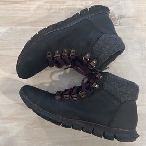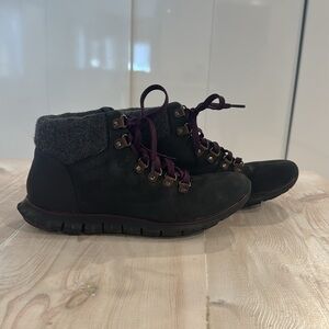 Cole Haan Boots. Zerogrand style. Beautiful purple laces. Preloved (slight wear on toe) with lots of wear left for all of your hiking adventures. Fit like 7.5. Size isn’t shown.