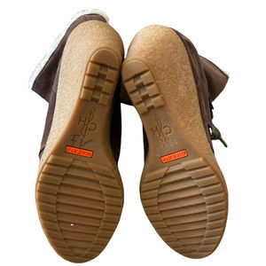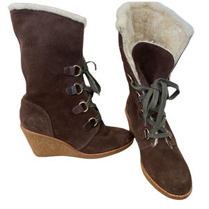 Cole Haan Boots Brown Suede Shearling Lace Up Wedge Heel 7.5