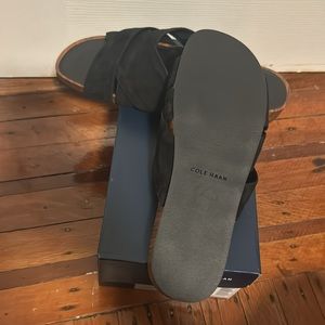 Cole Haan Braelyn Sandal in black suede. Sandals are brand new in box and never have been worn. Sandals will come in original packaging and box.
