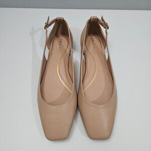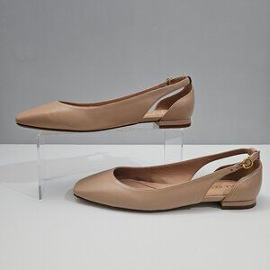 Cole Haan Bria Flat Slingback Cutout Square Toe Brush Beige Leather Size 8.5