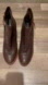These Cole Haan ankle booties in a rich brown hue feature a convenient side zipper for easy wear. Crafted with a minimalist design, they boast a low stacked heel for everyday comfort and versatility.