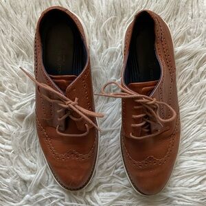 Cole Haan Brown Cognac Grand Evolution Wing Oxford Leather Lace Up Shoes Sz 8.5