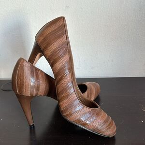 Elegant brown heels with a textured finish. Perfect for any occasion.