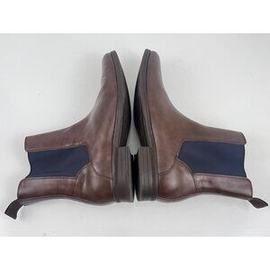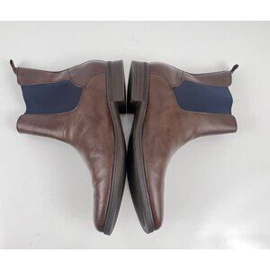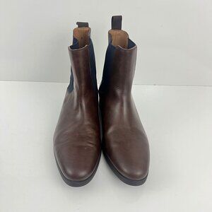 Elegant brown leather Chelsea boots. Slip-on design with elastic side panels. Perfect for versatile styling.