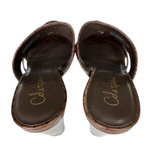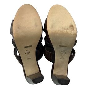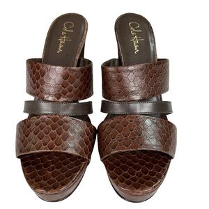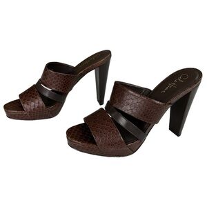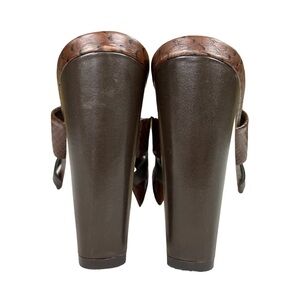 Stylish brown platform sandals. Features a textured design. Perfect for any occasion.