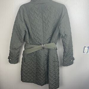 Cole Haan Signature Brown Quilted Belted Coat Women’s Medium Long Jacket Hooded