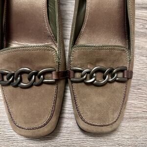 Cole Haan Brown Suede Chain Pumps 8B – Classic Square Toe Kitten Heels Workwear