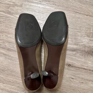 Cole Haan Brown Suede Chain Pumps 8B – Classic Square Toe Kitten Heels