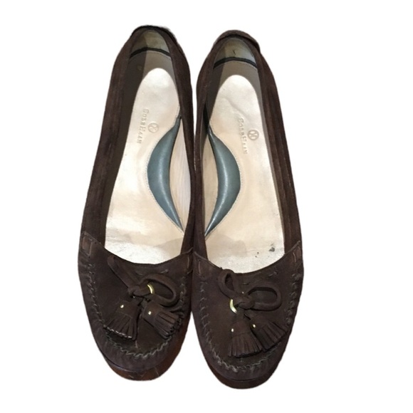 Cole Haan Brown Suede Loafers Tassels Classic Academia Fall Preppy Old Money