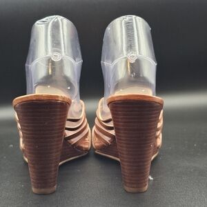 Step out in style with these elegant brown wedge sandals. Perfect for any occasion, these shoes offer both comfort and sophistication.