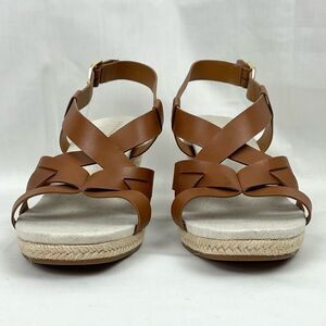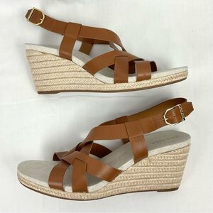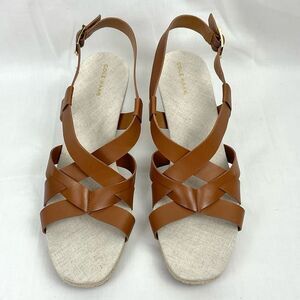 Cole Haan Brown Leather Wedge Heel Crystal Espadrille Sandal
