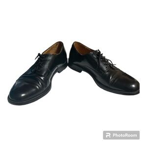 Cole Haan Caldwell Black Leather Oxford Cap Toe Lace Up 08330 Dress Shoes Men’s size 8.5. Some creasing at toe box and scuffed bottoms. Otherwise in good condition.