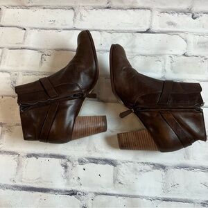 Cole Haan Calixta brown leather stacked heeled harness ankle boots size 7.5