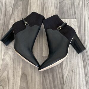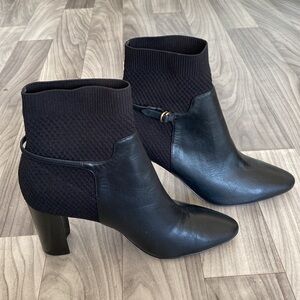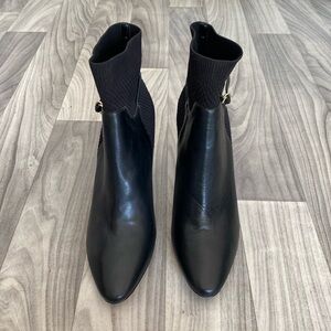 Cole Haan Camille Ankle Sock Bootie Black Leather Knit Grand.OS Water-Resistant