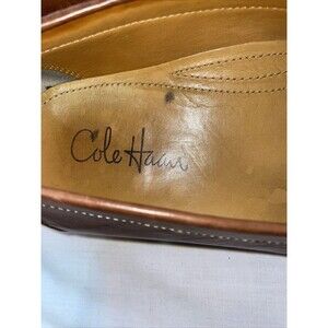 This mens brown leather pair of Cole Haan casual shoes looks great! They have some scuffing.