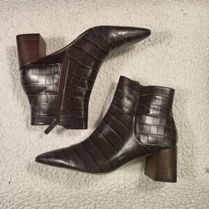 Cole Haan Catlyn Block Heel Booties Embossed leather dark brown size 11