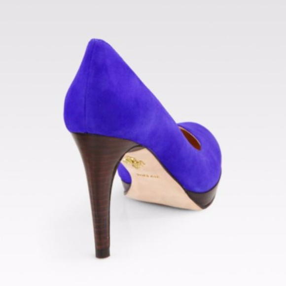 These beauty are in Perfect condition never worn! Cole Haan, Royal blue! They are very comfortable for their height with built in Nike air insoles. No scuffs, only a little markings on the sole from trying them around the house. I have the original box, dust bag and top heels replacement. Heel is 3.5" with .5" platform.