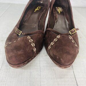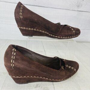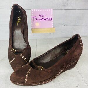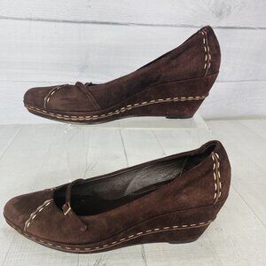 Cole Haan Chocolate Brown Suede Mary Jane Wedge Covered Heel Shoes Size 8.5 B