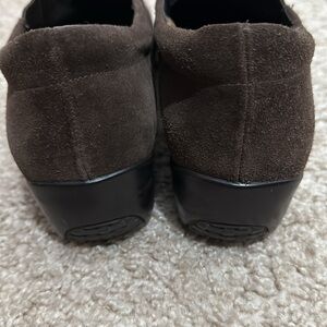 Great condition! Suede upper sole. Clog wedge style slip on shoe.