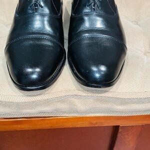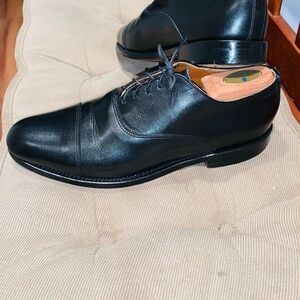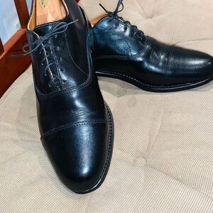 Cole Haan Classic Black Cap Toe Oxfords. Has all genuine leather and a 260 degrees premium welt stitch. Made in Maine with other premium shoes like Alden’s, these shoes are top of the line handcrafted