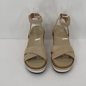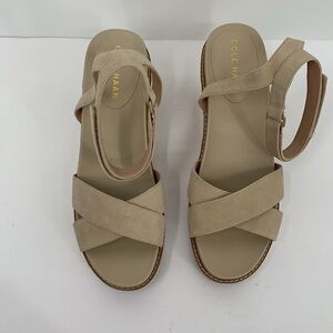 Cole Haan CloudFeel Espadrille Leather Wedge Sandals in Beige - new without box