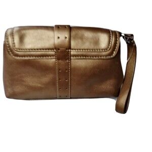 Cole Haan Clutch Purse Large Leather Wristlet Golden Bronze
