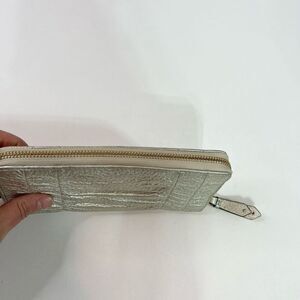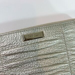 Cole Haan Clutch Wallet Womens White Gold Bailey II Pleated Pebbled Leather NWT