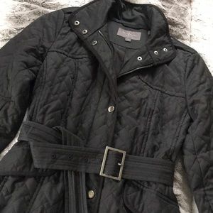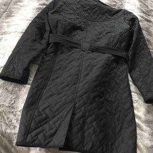 Chic Cole Haan black quilted coat. Gently used. Past season item. Belted waist so it’s great for every figure! Approx 40 inches long