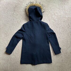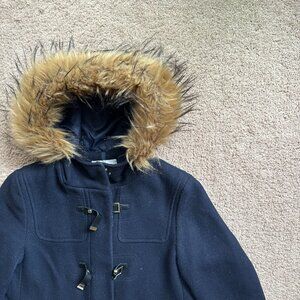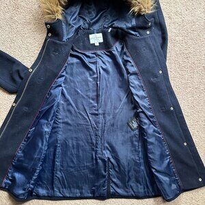 Cole Haan Coat Womens 6 Wool Blend Full Zip Faux Fur Hood Navy Blue Jacket