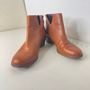 Cole Haan Cognac Leather Ankle Boots Block Heel, Chelsea Style Size 8
