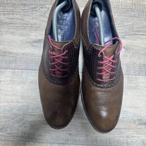 Cole Haan Colton Croc Embossed Brown Leather Saddle Shoes Men's Size 12