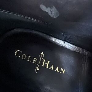Step up your style game with these sleek Cole Haan Cora boots. The black suede material and knee-high shaft style give these wedge boots a classic and professional look that's perfect for any occasion, from work to going out with friends. The round toe shape and zipper closure provide a comfortable fit, while the wedge heel adds some extra height. These boots are perfect for any season, whether you're dressing up for a night out or layering up for a chilly day at the office. The Nike Air product line ensures quality and comfort, while the various accents, like the zipper and wedge heel, add a touch of sophistication. Don't miss out on these versatile and stylish boots for your wardrobe.