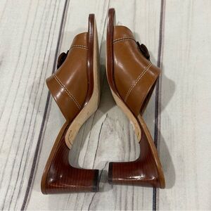 Cole Haan Country Carmel Brown Leather Peep Toe Slide 2 1/2" Block Heel Sz 6B