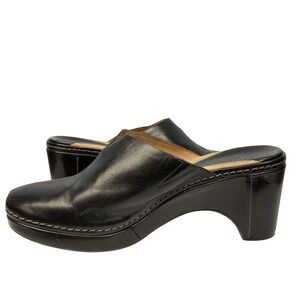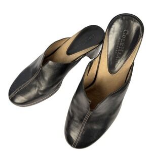 Scandi, minimalist, black leather mules, slip on clogs, block heel shoes, vintage cole haan, 90s y2k style, classic work heels, retro mule clogs, designer leather footwear, timeless black heels, office chic shoes, casual dress shoes, platform slip ons, modern vintage shoes, understated style, sleek leather mules, versatile wardrobe staple