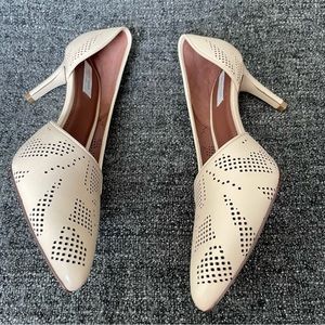 Elegant cream heels with perforated design. Pointed toe. Comfortable fit.