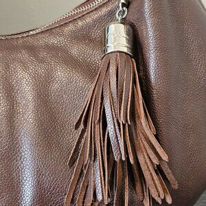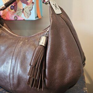 Cole Haan Crescent Hobo Chocolate Brown Pebbled Leather Silver hardware Tassel