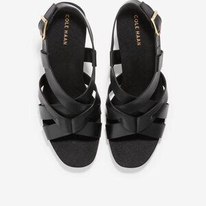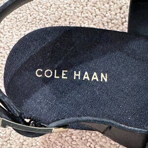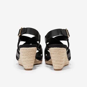 Cole Haan Crystal Leather Espadrille Wedge Heel Sandal Black Strappy Size 9.5 Vacation Resort Comfort