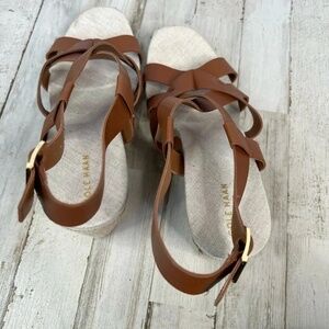 Cole Haan Crystal Wedge Sandal Brown Leather NEW Size 8