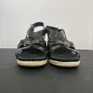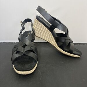 Cole Haan Crystal Womens Size 9.5B Shoes Black Leather Wedge Espadrille Sandals