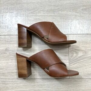 Cole Haan Dakota Criss Cross Mule Brown Leather Sandals Block Heel Women's 8.5B