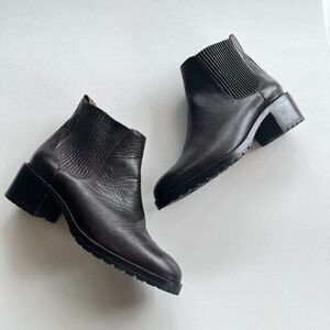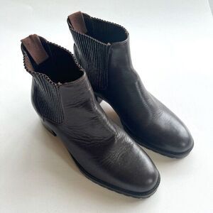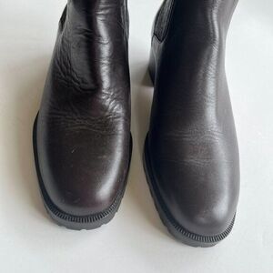 Cole Haan Dark Brown Leather Chunky Heeled Ankle Riding Boots Womens Siz…