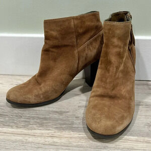 Cole Haan Davenport Bootie Brown Suede Leather Ankle Boots Block Heel Size 7.5